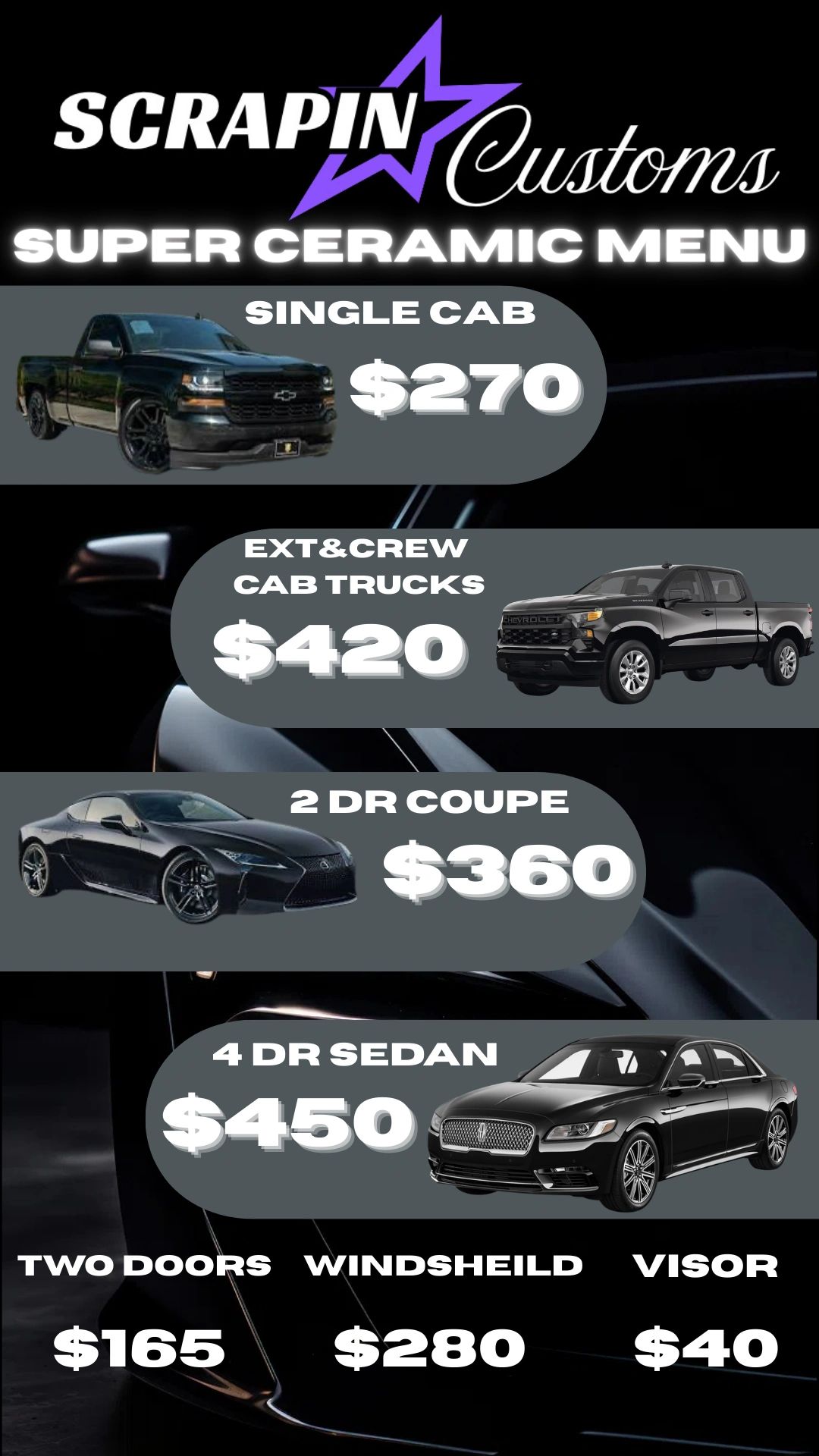 Super ceramic is our most premium option blocking %99 of UV rays and %90 of heat from the sun, making it ideal for classic resto cars and work vehicles