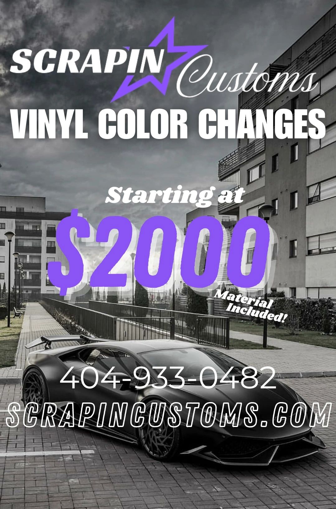 Our vinyl color changes start at $2000 for coupes and small sedans, prices may vary on vehicle size. Call or text for details!